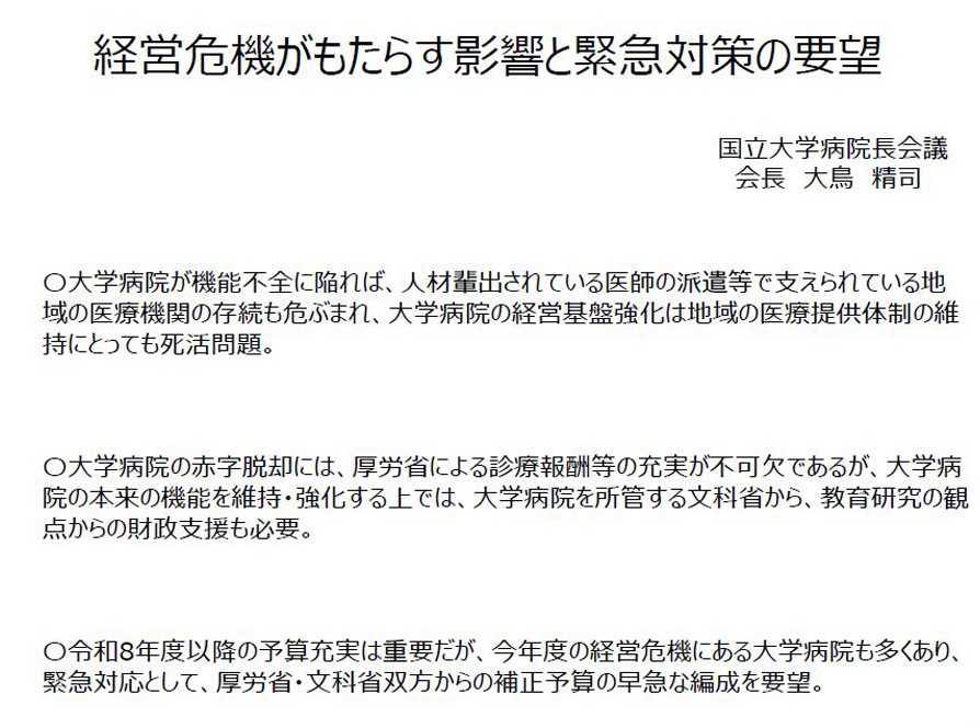 ◆発表内容:国立大学病院令和6年度決算概要(速報値)及び国立大学病院長会議総会について
