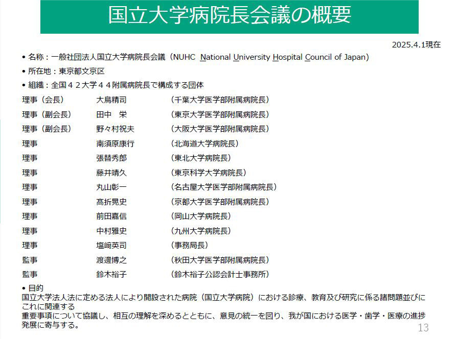 一般社団法人国立大学病院長会議 事務局長 塩﨑 英司(しおざき えいじ)