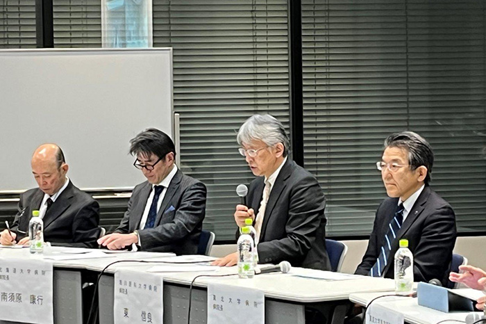 2025年(令和7年)度第4回記者会見を、2025年12月19日に開催いたしました。会見内容については2部制で実施し、第1部として経営改革を推進する共同調達は他の医療機関と協力し、法人化をすることになりました旨を関係団体と共にご報告いたしました。第2部は、上半期の経営実績を踏まえた令和7年度収支見込とこの度の補正予算について、会場・オンラインでご説明いたしました。